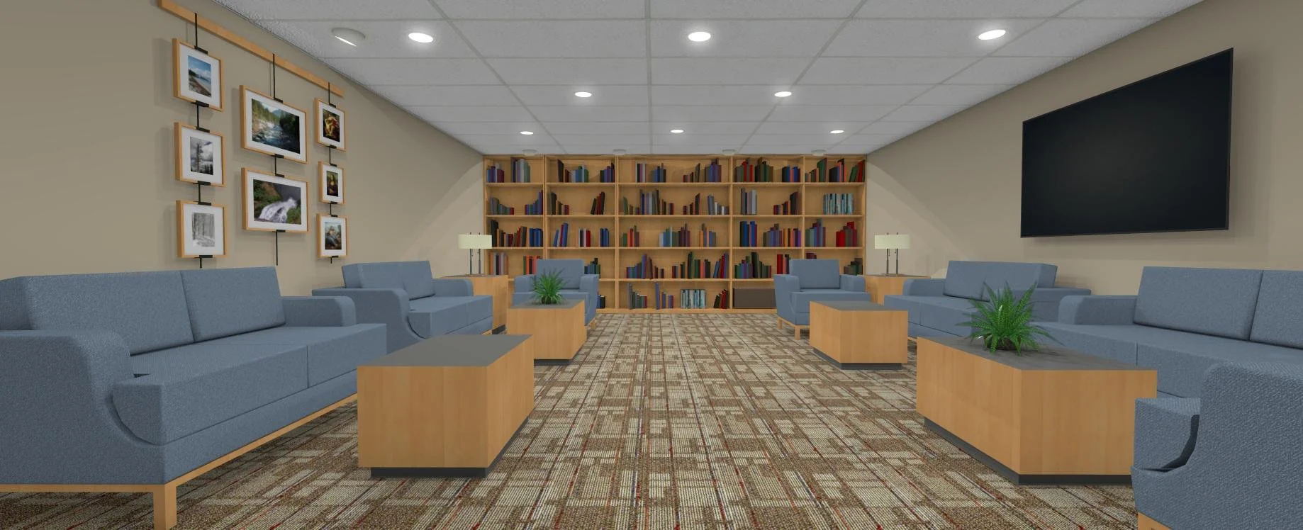 Rendering of the new Library space which will replace the current Nursery on our lower level.